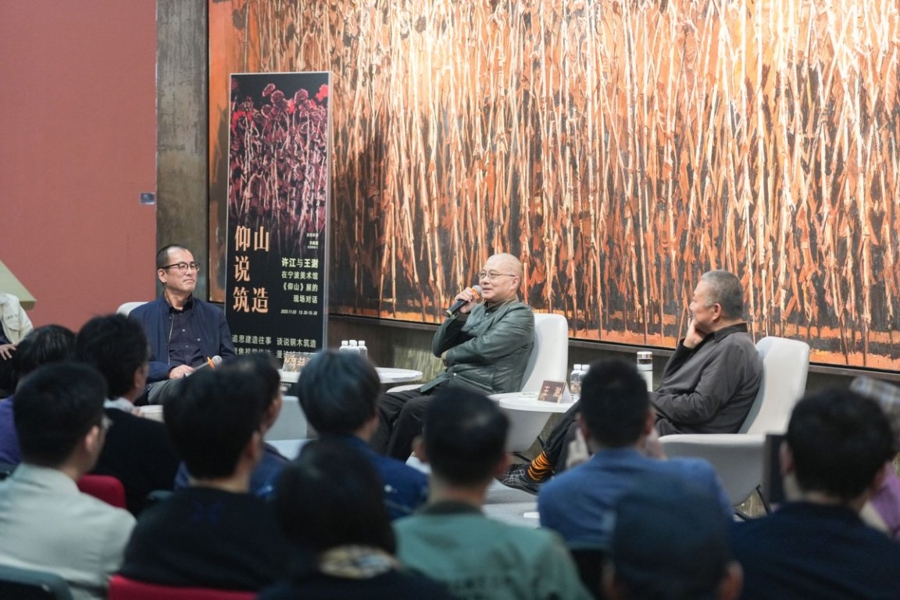 “本次对谈不仅是对宁波美术馆二十年发展历程的深情回望,更是对艺术、建筑与城市化融合发展的深度思辨。这场跨越艺术与建筑领域的对话,为宁波乃至中国的城市‘内涵式发展’提供了富有启示的思考路径。”11月3日下午,宁波美术馆“仰山——许江艺术展”现场内思潮涌动、妙语连珠,中国文联副主席、中国油画学会会长、浙江省文联主席、中国美术学院学术委员会主任许江,中国美术学院建筑艺术学院院长、教授、博士生导师、普利兹克奖得主王澍,围绕“仰山说筑造”主题在现场展开深度对谈,共同回溯宁波美术馆20年发展历程,探讨艺术、建筑与城市文化之间的共生关系。